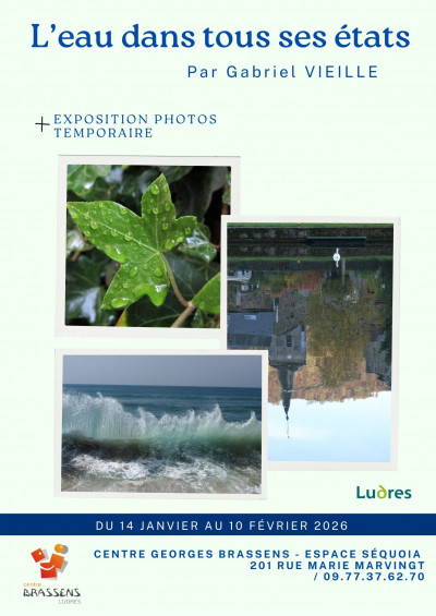 Elle est omniprésente dans nos vies, élément majeur de notre organisme, l’eau est synonyme de vie. Nous pouvons la contempler sous ses diverses formes : rivières, océans, nuages ou givres, c’est l’objet de cette exposition.
